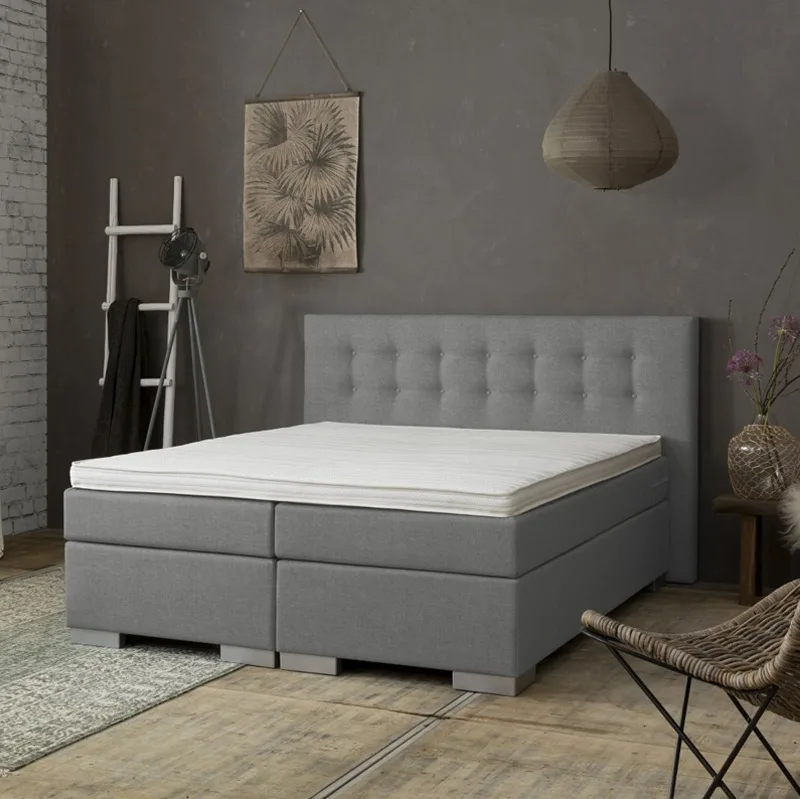 2-Persoons Boxspring – Frig Lounge – Grijs 140×210 cm – Pocketvering – Inclusief Topper – Dekbed-Discounter.nl