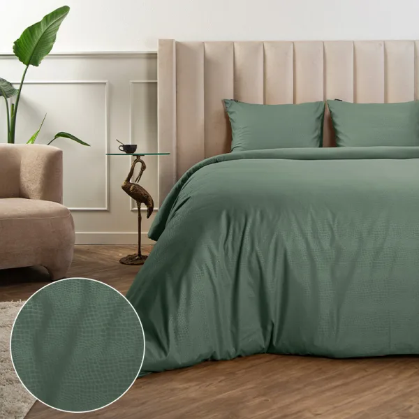 Dekbedovertrek Embossed Snake – Lits-Jumeaux (240×220 cm) – Olijfgroen Microvezel – Dessin: Effen – Fresh & Co – Dekbed-Discounter.nl