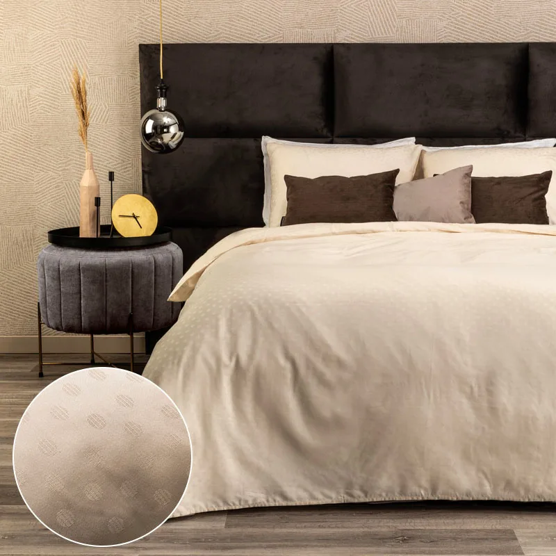 Het dekbedovertrek is gemaakt van katoen-satijn jacquard. Door gebruik van deze stof krijgt het overtrek een hogere draaddichtheid en voelt de stof vele maler gladder aan dan bijvoorbeeld bij gewoon katoen. Ook is met deze stof pluizig of klittend haar verleden tijd! Dankzij het gladde materiaal heb je daar voortaan geen last meer van. Daarnaast heeft katoen-satijn goed ademende en vocht absorberende eigenschappen. Dit geeft het een luchtige touch. Zo slaap je zelfs in de warmere maanden prettig onder dit dekbedovertrek.