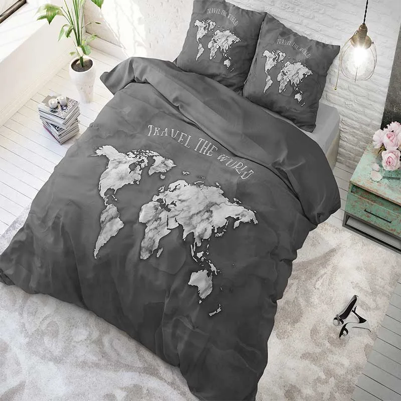 Dekbedovertrek Marble World Antraciet – Tweepersoons (200×200 cm) – Grijs & Antraciet Katoen – Dessin: Patroon – Pure – Dekbed-Discounter.nl