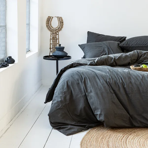 Dekbedovertrek Stone Washed – Lits-Jumeaux (240×220 cm) – Antraciet Microvezel – Dessin: Effen – Manilla – Dekbed-Discounter.nl