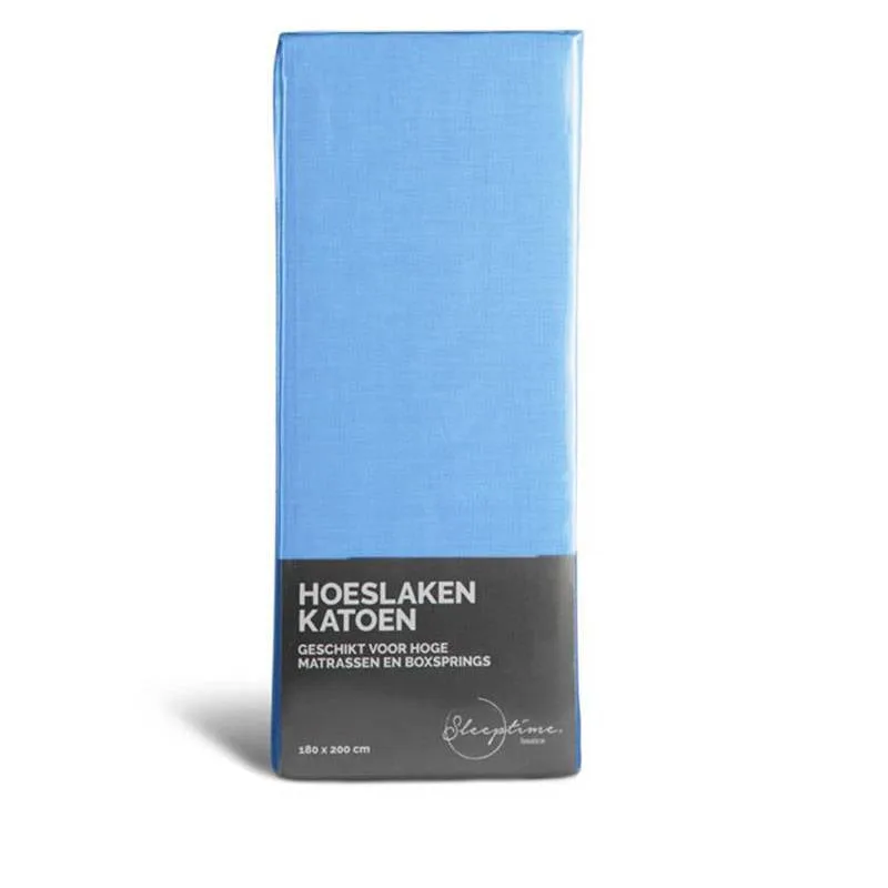 Hoeslaken – Blended Katoen – Blauw – 180×200 cm – Blauw – Home Care – Dekbed-Discounter.nl