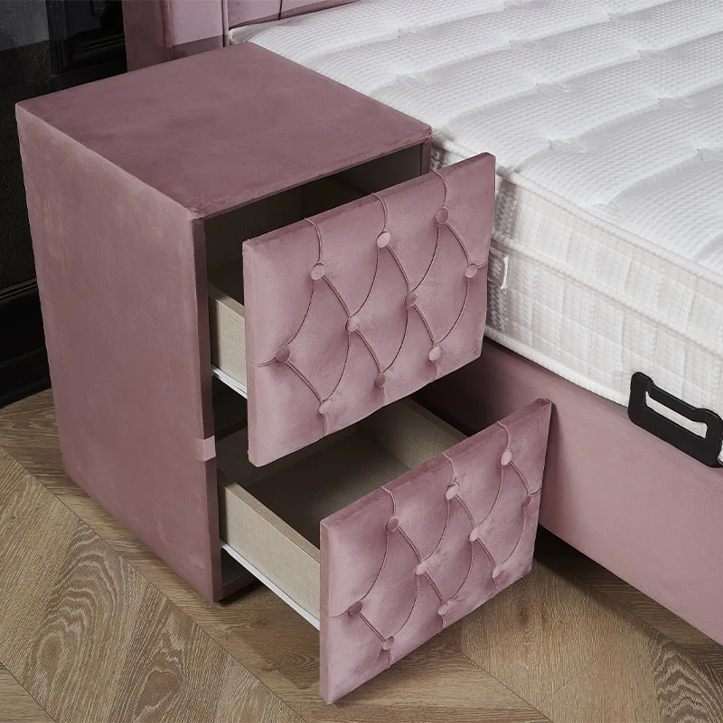 Ga voor gemak en maak jouw boxspringset compleet met een bijpassend nachtkastje. Het nachtkastje heeft een geknoopt design en heeft 2 lades waarin jij je spullen kan opbergen.