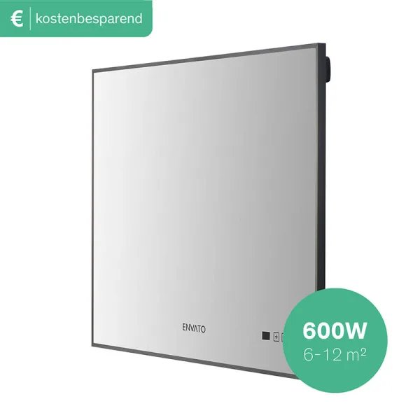 Dit verwarmingspaneel fungeert zowel als kachel, maar ook als spiegel! Door het spiegelglas, is dit een perfect paneel voor in bijvoorbeeld de badkamer of hal.