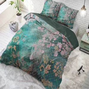 Dekbedovertrek Tiran Flower – Tweepersoons (200×200 cm) – Groen Katoen – Dessin: Natuur – Pure – Dekbed-Discounter.nl